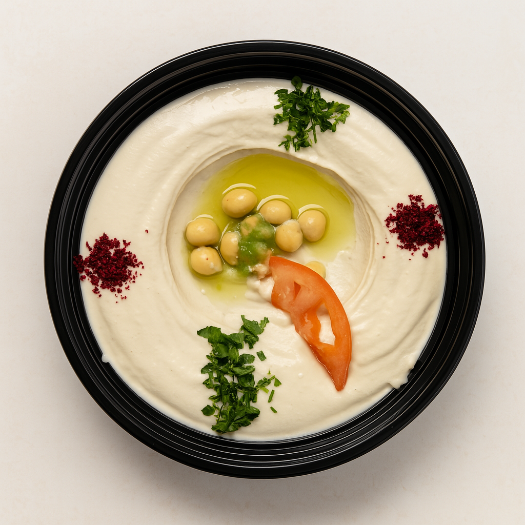 Creamy blend of chickpeas, tahini, lemon juice, and garlic.